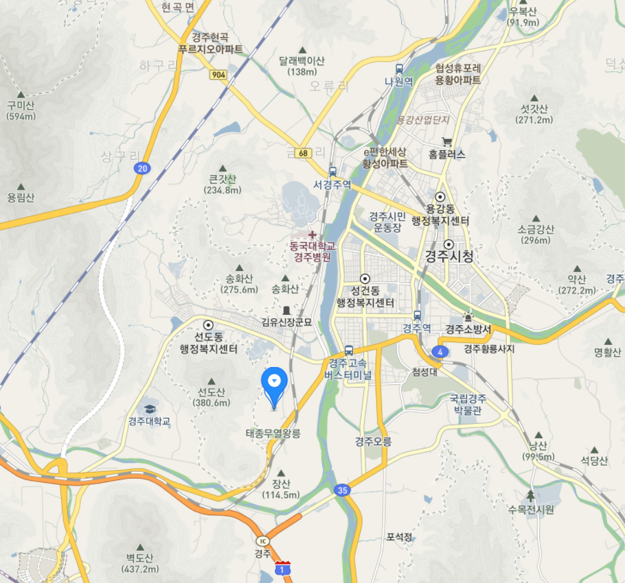 경주는 말 그대로 달리 설명이 필요없는 관광지죠. 지도 중앙이 경주시청이 있는 시내 지역입니다.