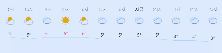 최저기온 -1도(오전), 최고기온 6도(낮)