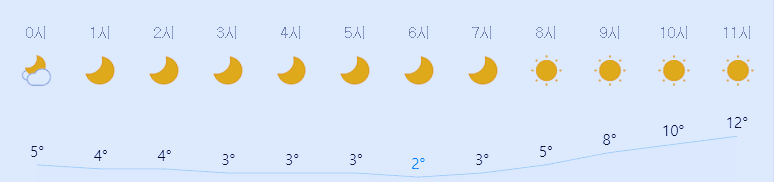 * 비 올 확률은 위 이미지에서 시간별 기상 상태 참조