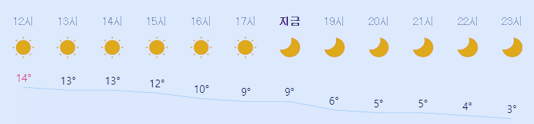 최저기온 3도(오전), 최고기온 14도(낮)