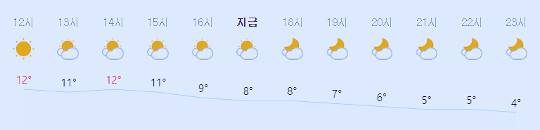 최저기온 0도(오전), 최고기온 12도(낮)