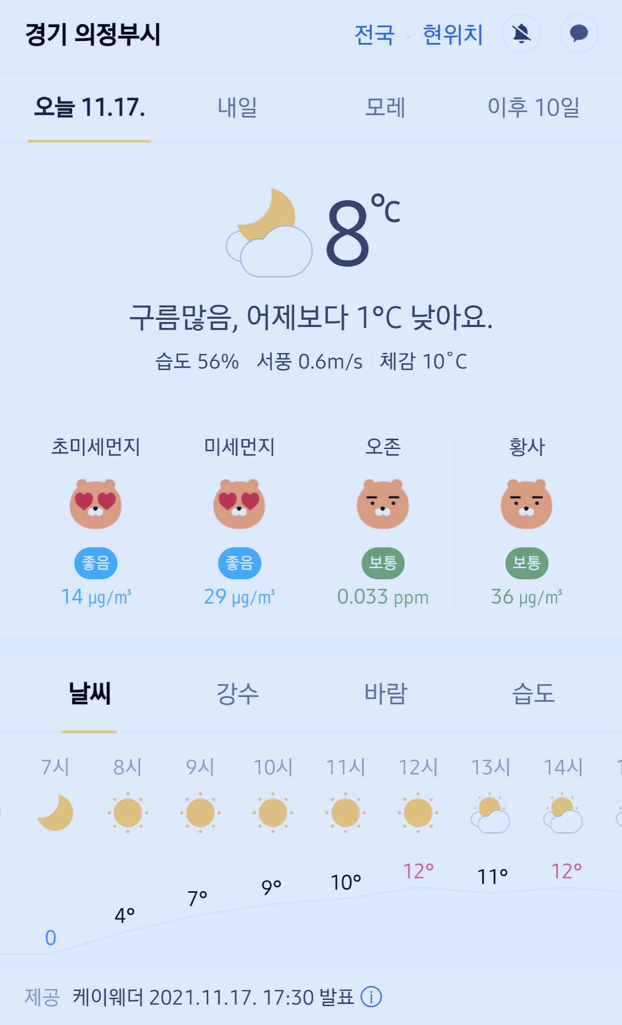 >>>경기도 의정부시 날씨 2021년 11월 17일. 오늘의 날씨, 오늘 날씨, 2021 1117, 초미세먼지, 미세먼지, 황사, 자외선