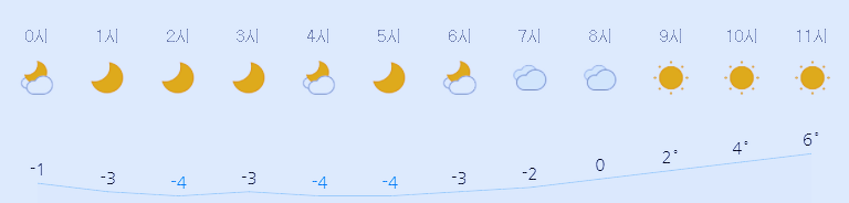 최저기온 -4도(오전), 최고기온 2도(낮)