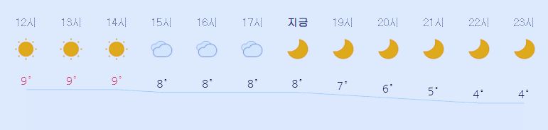 * 비 올 확률은 위 이미지에서 시간별 기상 상태 참조