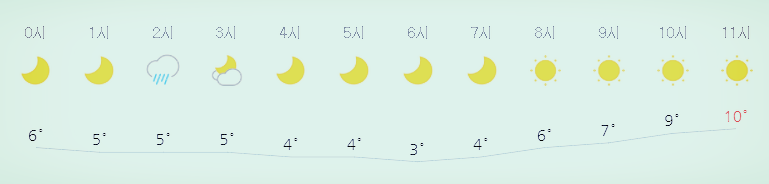 최저기온 1도(밤), 3도(오전), 최고기온 10도(낮)