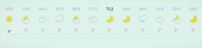 * 비 올 확률은 위 이미지에서 시간별 기상 상태 참조