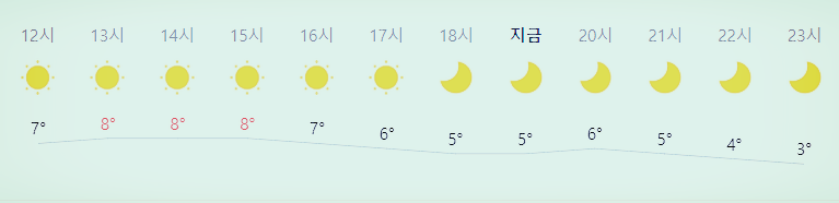 * 비 올 확률은 위 이미지에서 시간별 기상 상태 참조