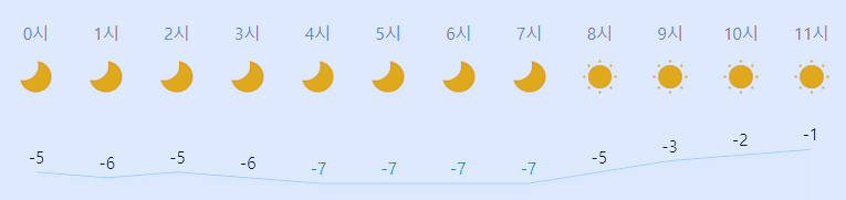 최저기온 -7도(오전), 최고기온 1도(낮)