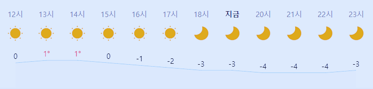 최저기온 0도(오전), -5도(밤), 최고기온 4도(낮)