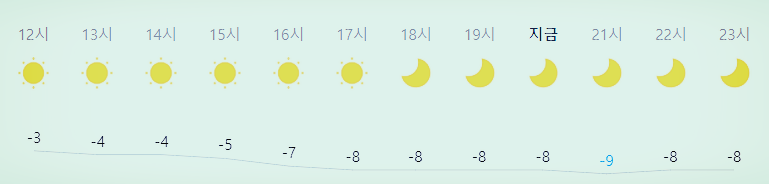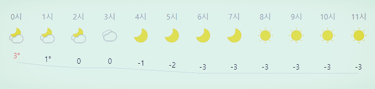 최저기온 -9도(밤), 최고기온 3도(새벽)