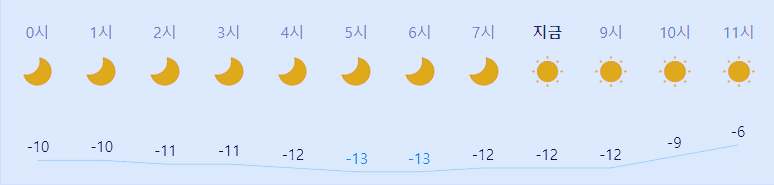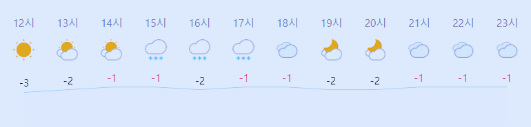 최저기온 -13도(오전), 최고기온 -1도(낮, 밤)