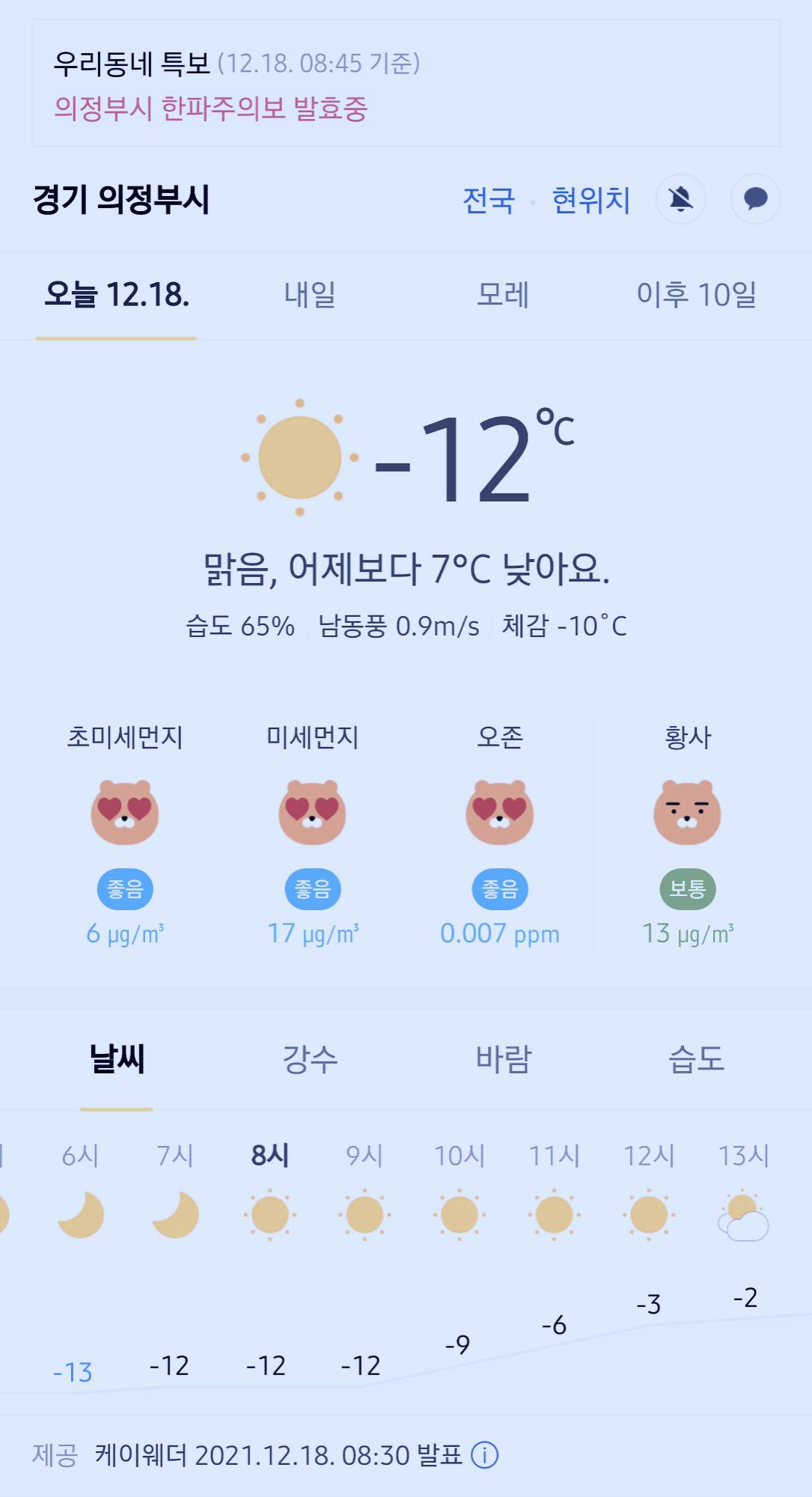 >>>경기도 의정부시 날씨 2021년 12월 18일. 한파주의보 발효중, 오늘의 날씨, 오늘 날씨, 2021 1218, 초미세먼지, 미세먼지, 황사, 자외선