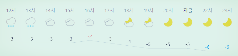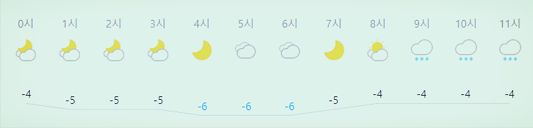 최저기온 -6도(오전, 밤), 최고기온 -2도(낮)