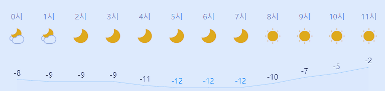 최저기온 -12도(오전), 최고기온 0도(낮)