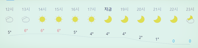 최저기온 0도(오전, 밤), 최고기온 6도(낮)