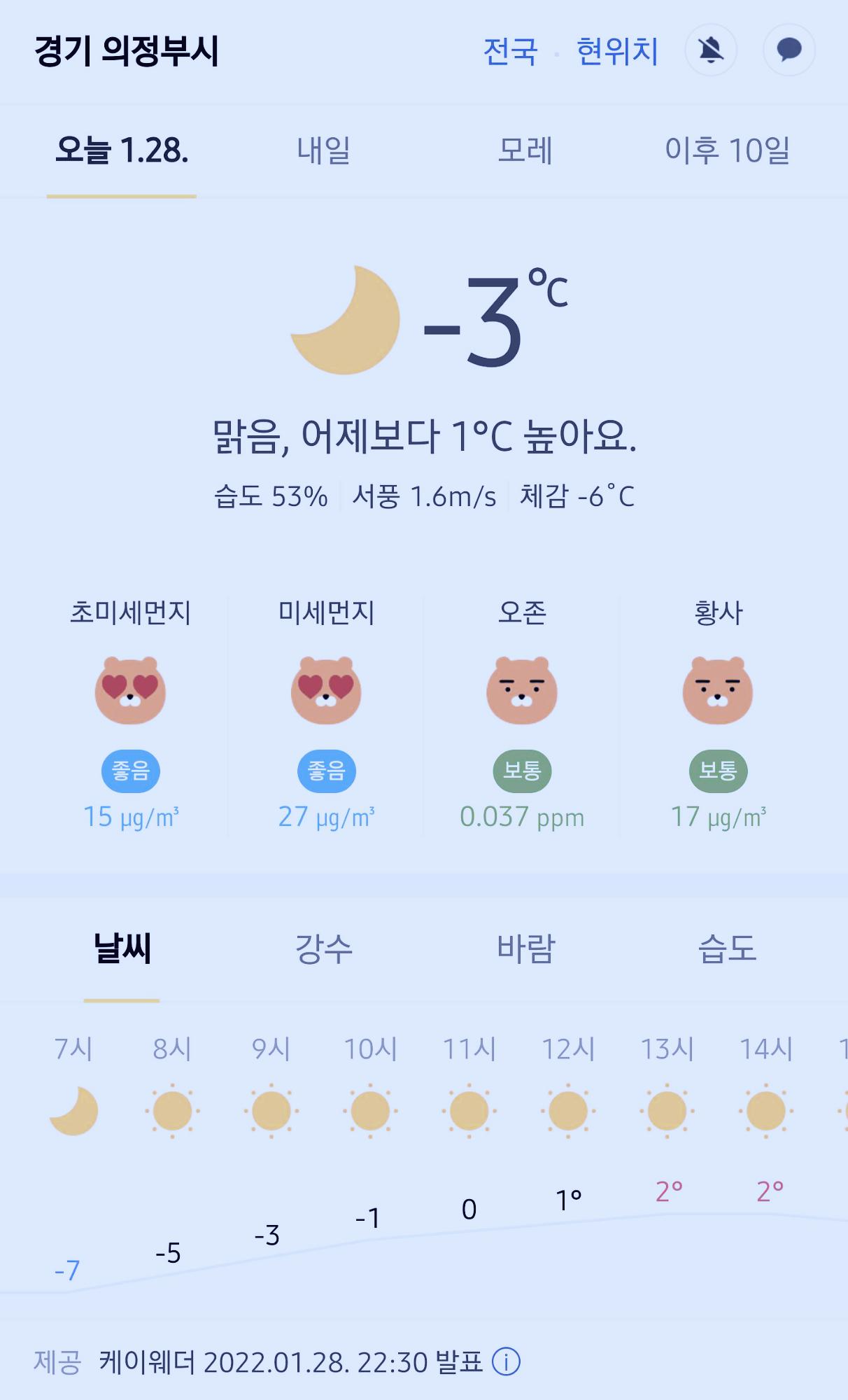 >>>경기도 의정부시 날씨 2022년 1월 28일. 오늘의 날씨, 오늘 날씨, 2022 0128, 초미세먼지, 미세먼지, 황사, 자외선