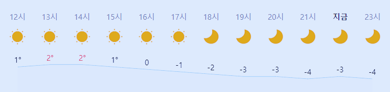 최저기온 -7도(오전), 최고기온 2도(낮)