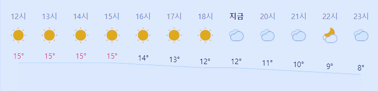 어제보다 1도 낮은 최저기온, 어제보다 2도 낮은 최고기온입니다 아침에 최저기온 영상 3도이고 낮 최고기온 영상 15도입니다