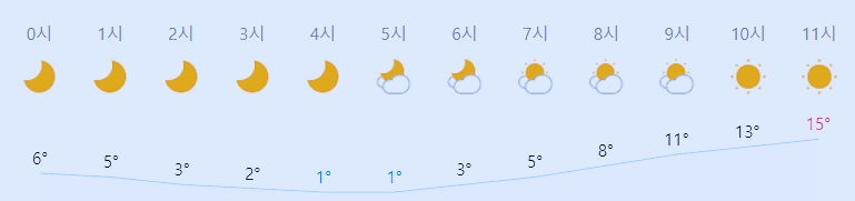 * 눈비 올 확률은 위 이미지에서 시간별 기상 상태 참조