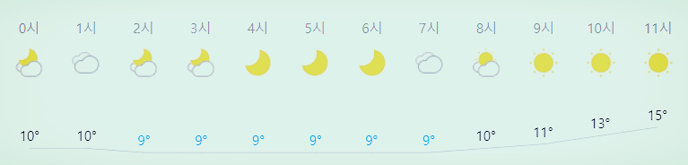 * 눈비 올 확률은 위 이미지에서 시간별 기상 상태 참조