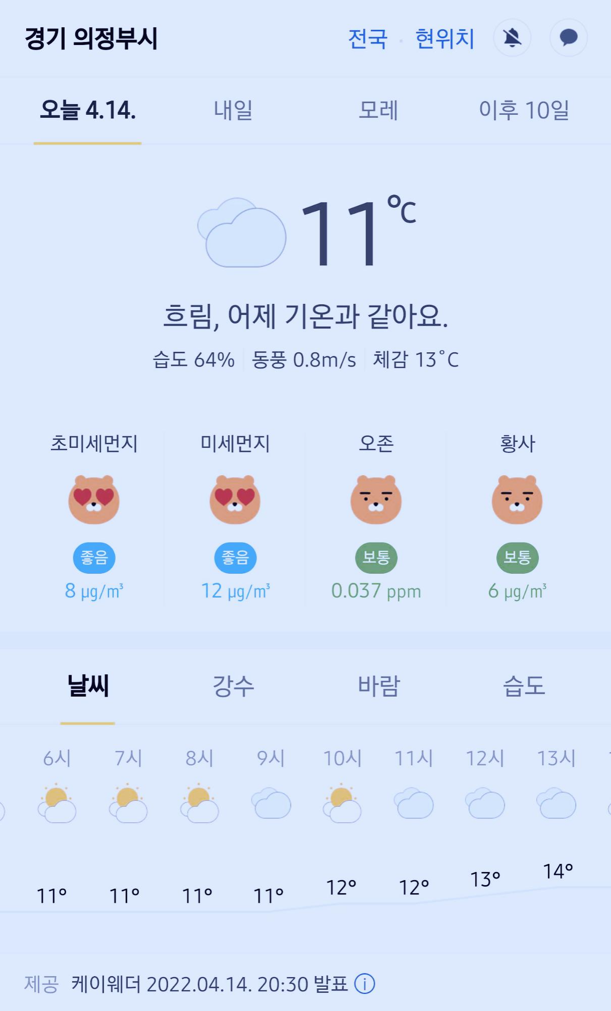 >>>경기도 의정부시 날씨 2022년 4월 14일. 의정부 날씨, 오늘의 날씨, 오늘 날씨, 2022 0414, 초미세먼지, 미세먼지, 황사, 자외선