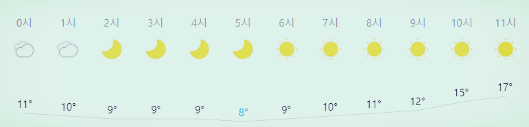 * 비 올 확률은 위 이미지에서 시간별 기상 상태 참조