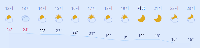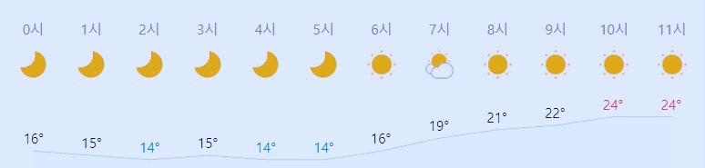 어제와 같은 최저기온, 어제와 같은 최고기온입니다 아침에 최저기온 영상 16도이고 낮 최고기온 영상 24도입니다