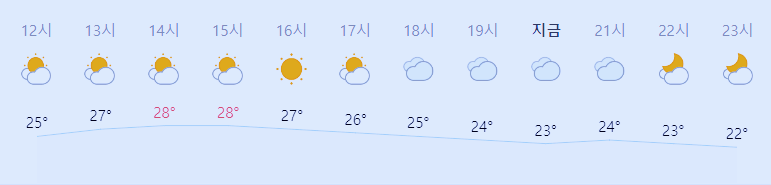 * 비 올 확률은 위 이미지에서 시간별 기상 상태 참조