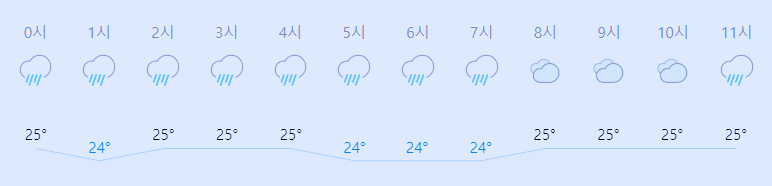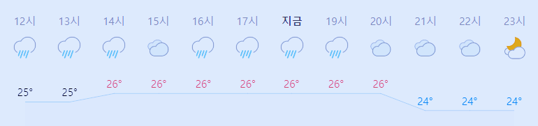최저기온 24도(새벽, 밤), 최고기온 26도(낮)