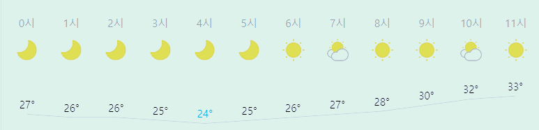 최저기온 24도(새벽), 최고기온 35도(낮)