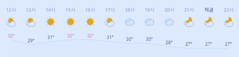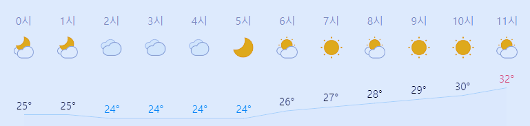 최저기온 24도(새벽), 최고기온 32도(낮)