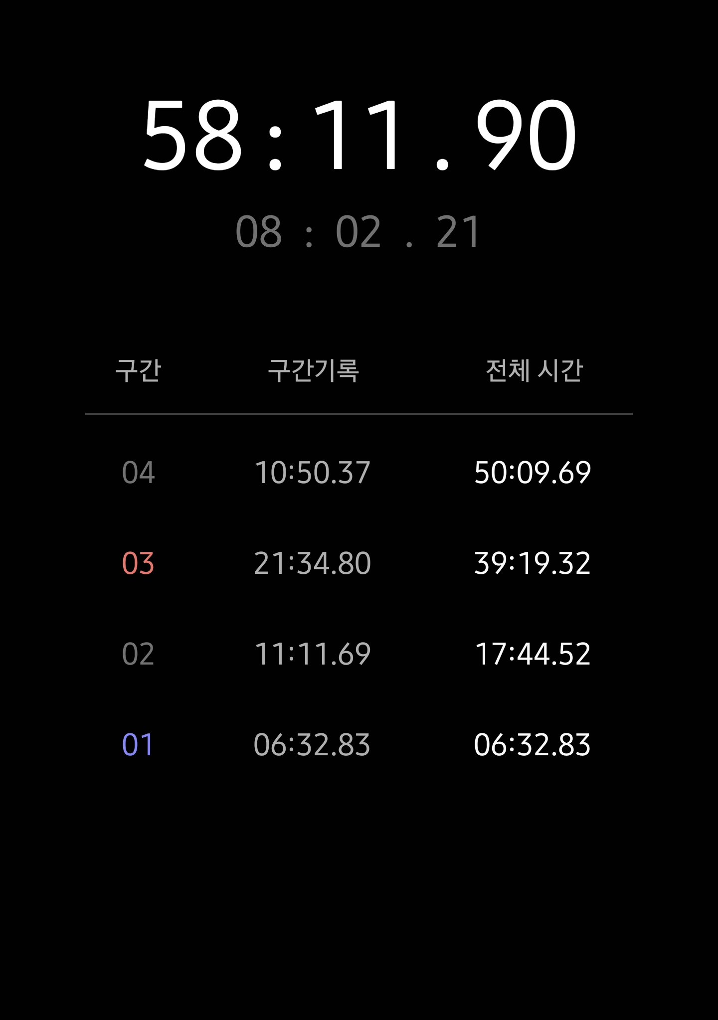 랩 타임 02 ~ 04 = 운동장 4바퀴 걸은 시간