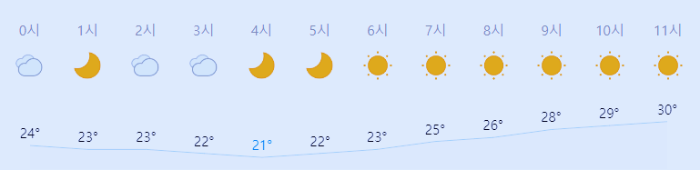 * 비 올 확률은 위 이미지에서 시간별 기상 상태 참조