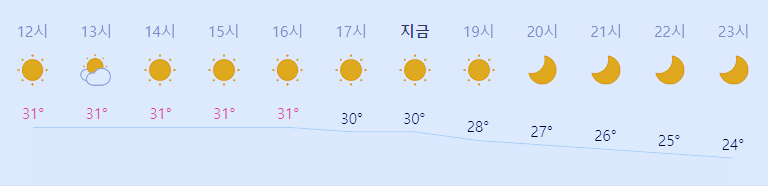 최저기온 21도(오전), 최고기온 31도(낮)