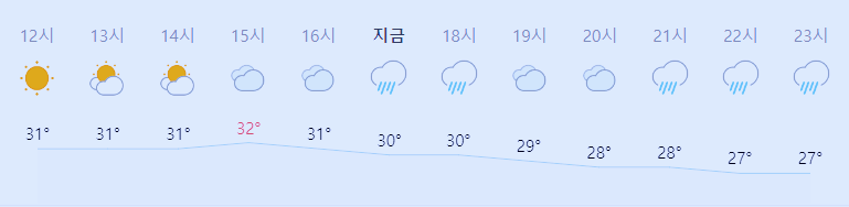 * 비 올 확률은 위 이미지에서 시간별 기상 상태 참조
