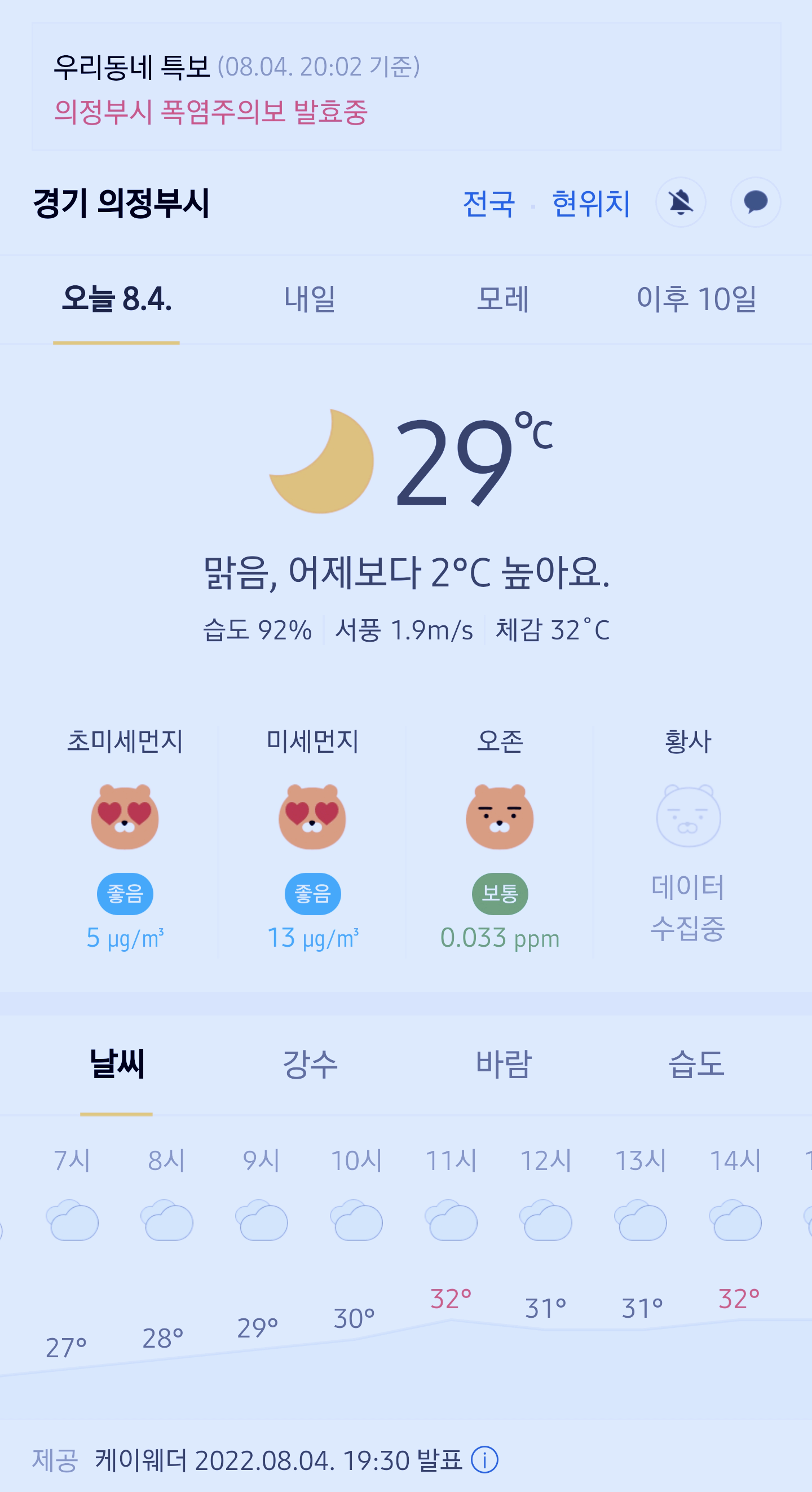 >>>경기도 의정부시 날씨 2022년 8월 4일. 의정부 날씨, 폭염주의보 발효중, 오늘의 날씨, 오늘 날씨, 2022 0804, 초미세먼지, 미세먼지, 황사, 자외선