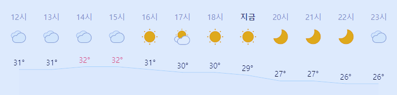 최저기온 25도(오전), 최고기온 32도(낮)