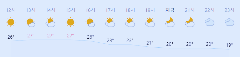 * 비 올 확률은 위 이미지에서 시간별 기상 상태 참조