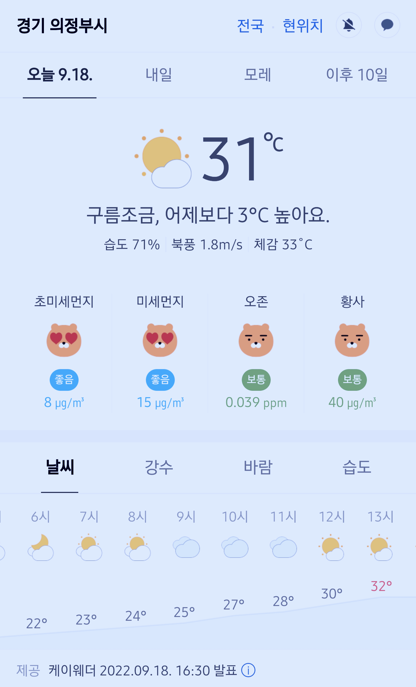 >>>경기도 의정부시 날씨 2022년 9월 18일. 의정부 날씨, 오늘의 날씨, 오늘 날씨, 2022 0918, 초미세먼지, 미세먼지, 황사, 자외선