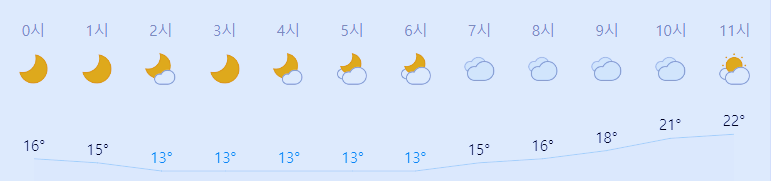 * 비 올 확률은 위 이미지에서 시간별 기상 상태 참조