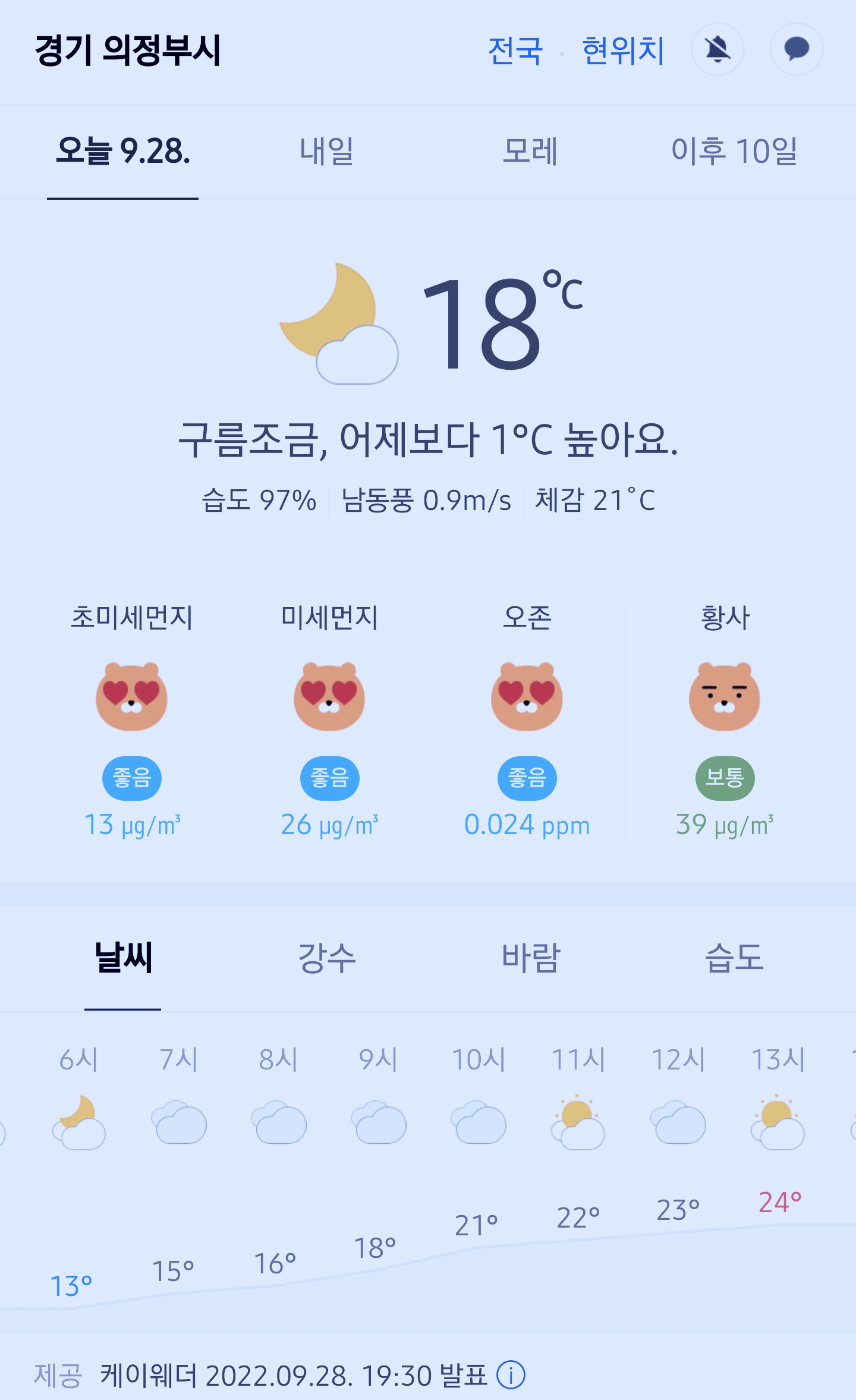 경기도 의정부시 날씨, 경기도 의정부시 오늘의 날씨, 의정부 오늘 날씨, 오늘의 날씨, 오늘 날씨, 2022 0928, 초미세먼지, 미세먼지, 황사, 자외선
