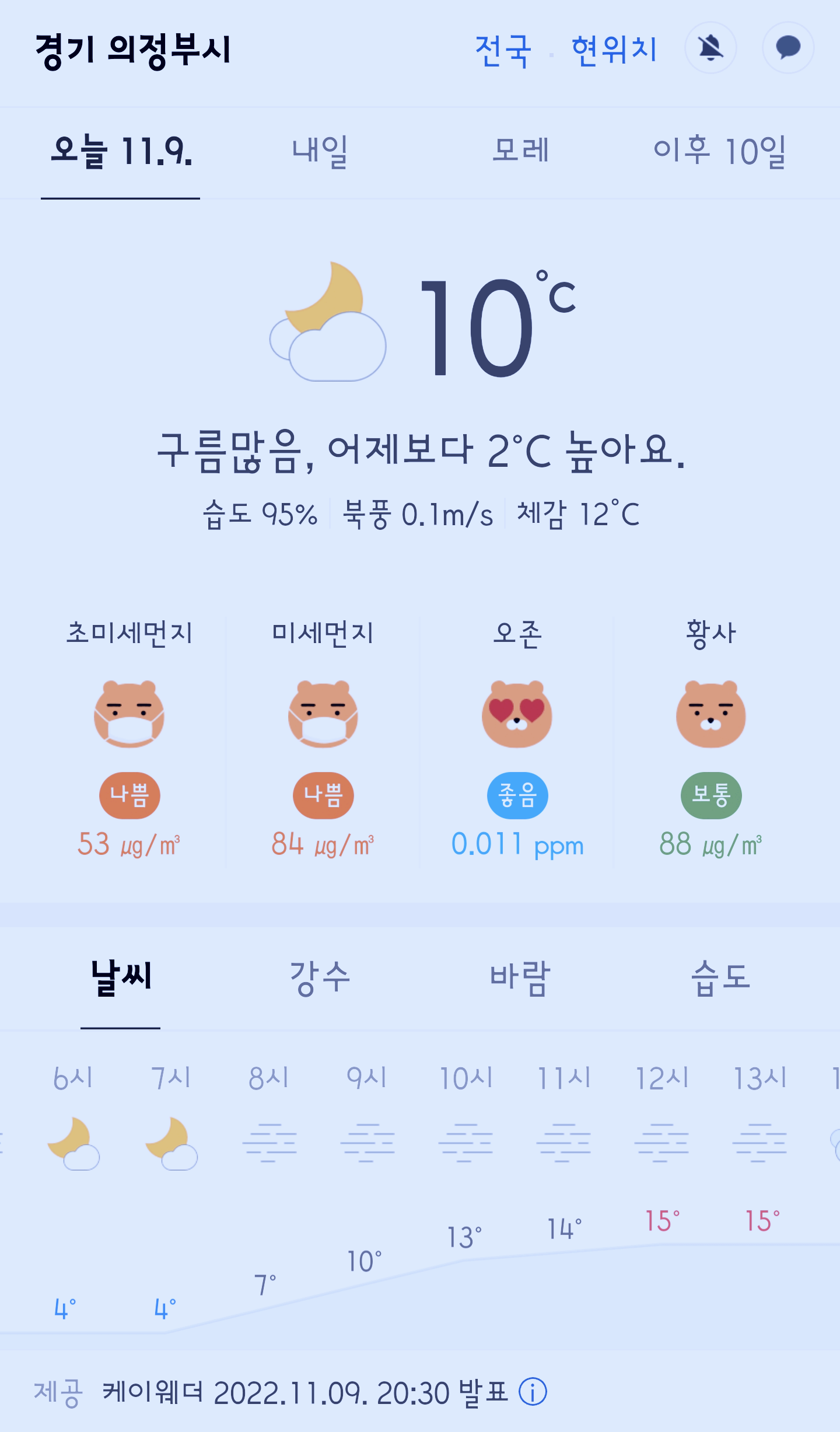 경기도 의정부시 날씨, 경기도 의정부시 오늘의 날씨, 의정부 오늘 날씨, 오늘의 날씨, 오늘 날씨, 2022 1109, 초미세먼지, 미세먼지, 황사, 자외선