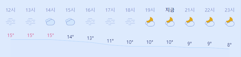 * 비 올 확률은 위 이미지에서 시간별 기상 상태 참조