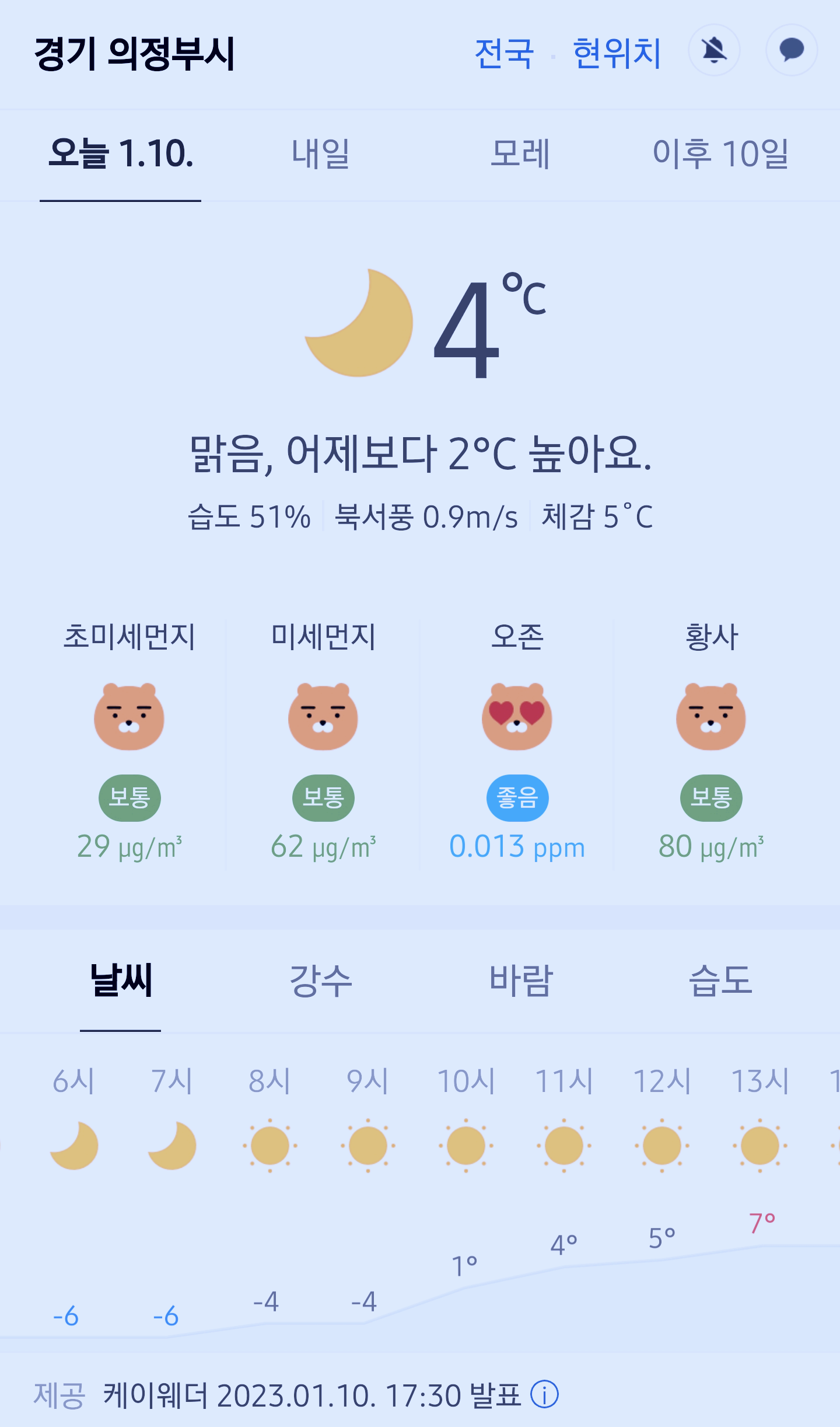 >>>>오늘의 날씨 ☀ 카테고리의 글 | 2023. 1. 10. 18:00