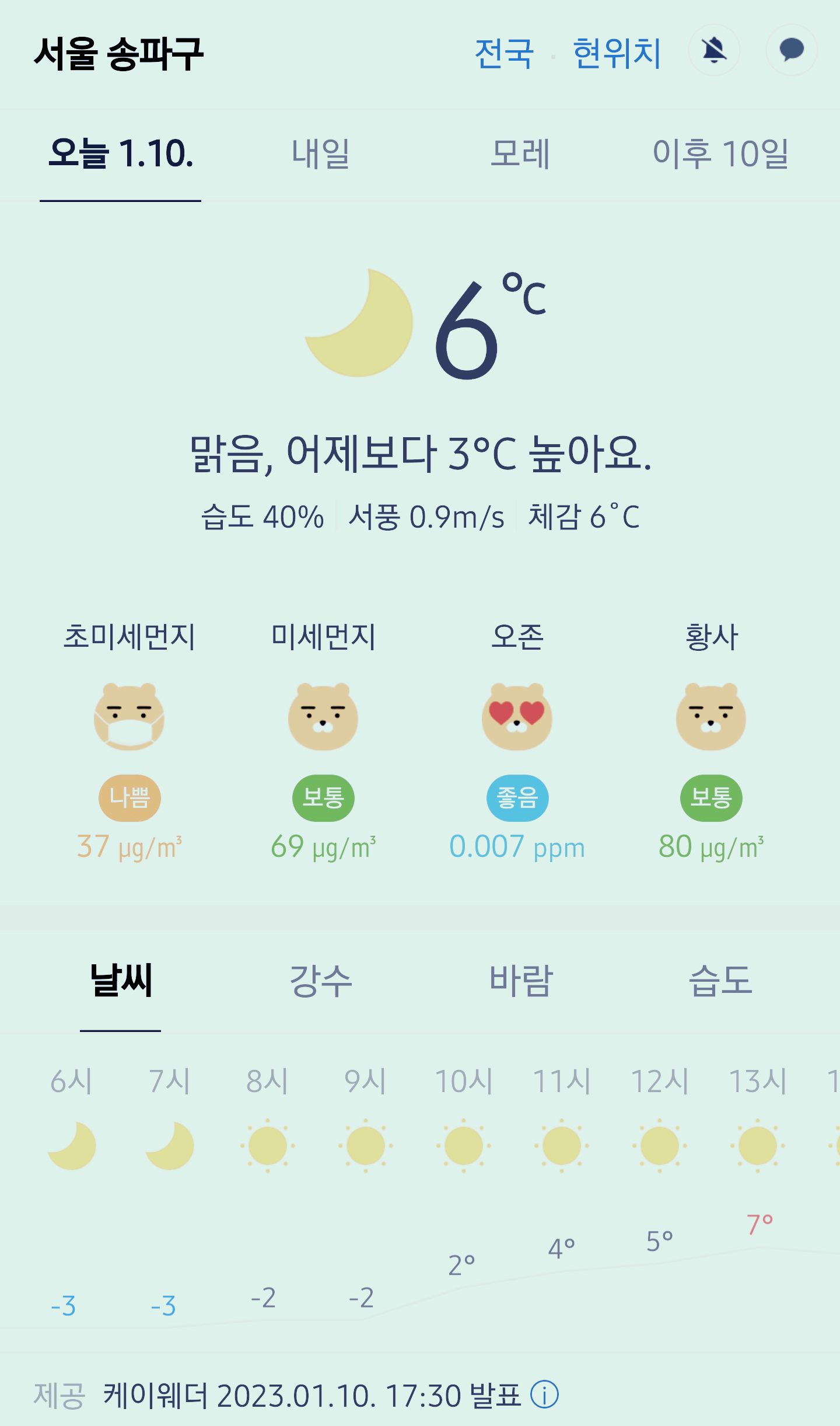 >>>서울 강남 송파구 날씨 2023년 1월 10일. 서울 강남구 오늘의 날씨, 오늘 날씨, 2023 0110, 초미세먼지, 미세먼지, 황사, 자외선
