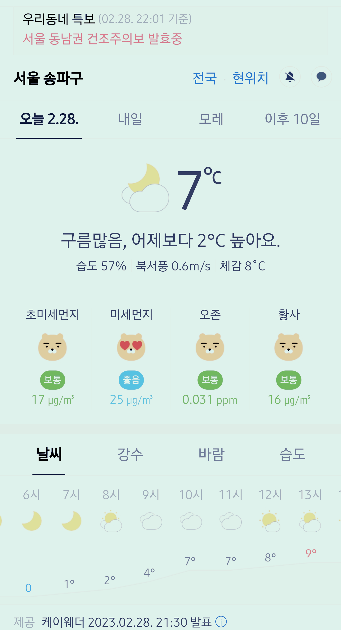 >>>서울 강남 송파구 날씨 2023년 2월 28일. 서울 강남구 오늘의 날씨, 건조주의보 발효중, 오늘 날씨, 2023 0228, 초미세먼지, 미세먼지, 황사, 자외선