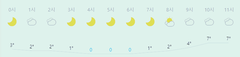 최저기온 -1도(오전), 최고기온 12도(오후)