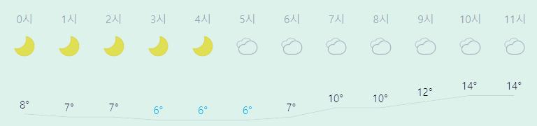 * 눈비 올 확률은 위 이미지에서 시간별 기상 상태 참조