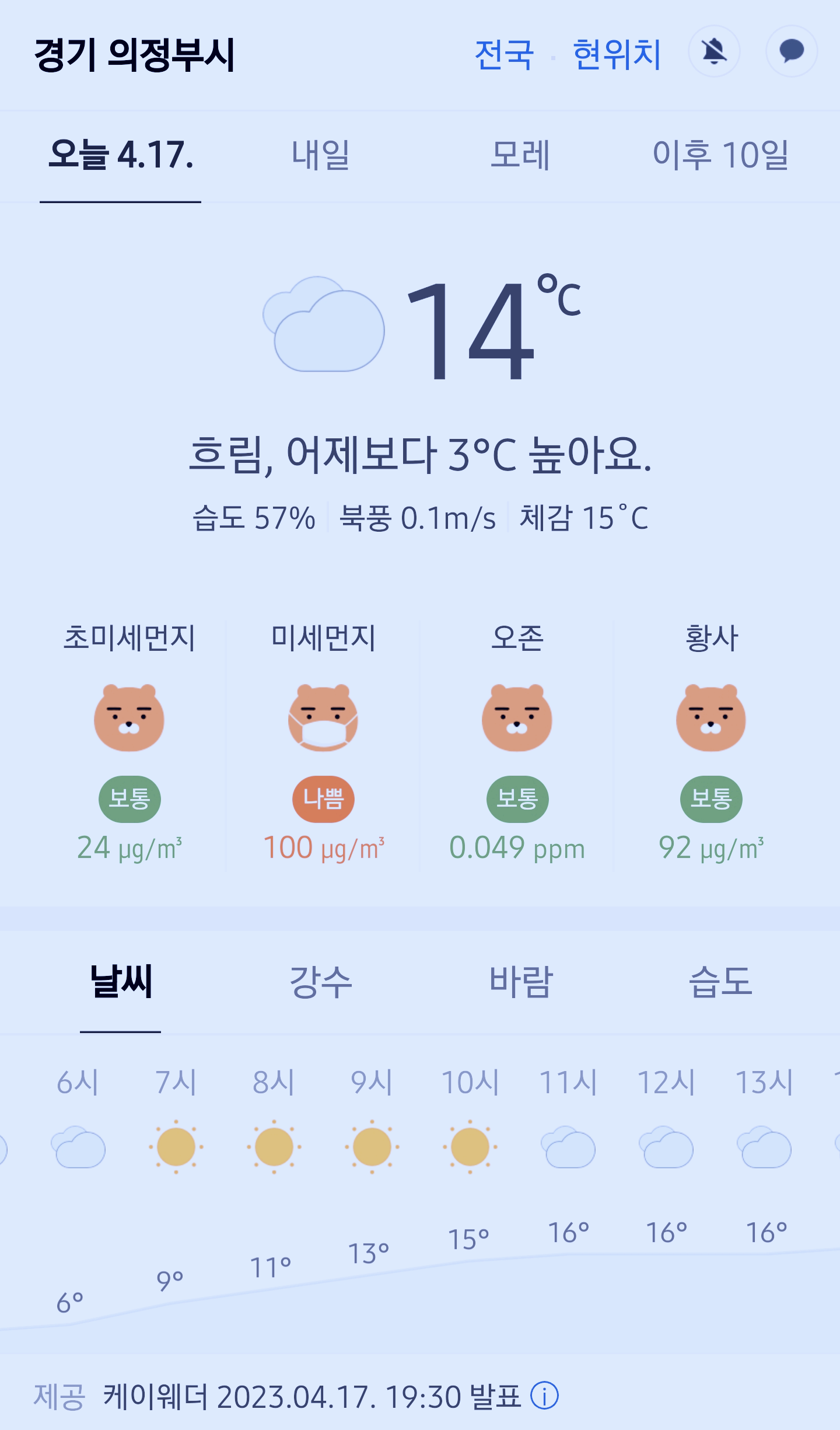 >>>경기도 의정부시 날씨 2023년 4월 17일. 의정부 날씨, 오늘의 날씨, 오늘 날씨, 2023 0417, 초미세먼지, 미세먼지, 황사, 자외선