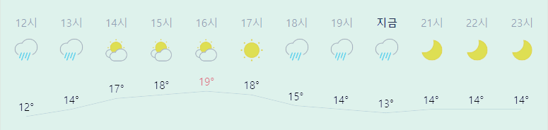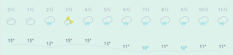 * 눈비 올 확률은 위 이미지에서 시간별 기상 상태 참조